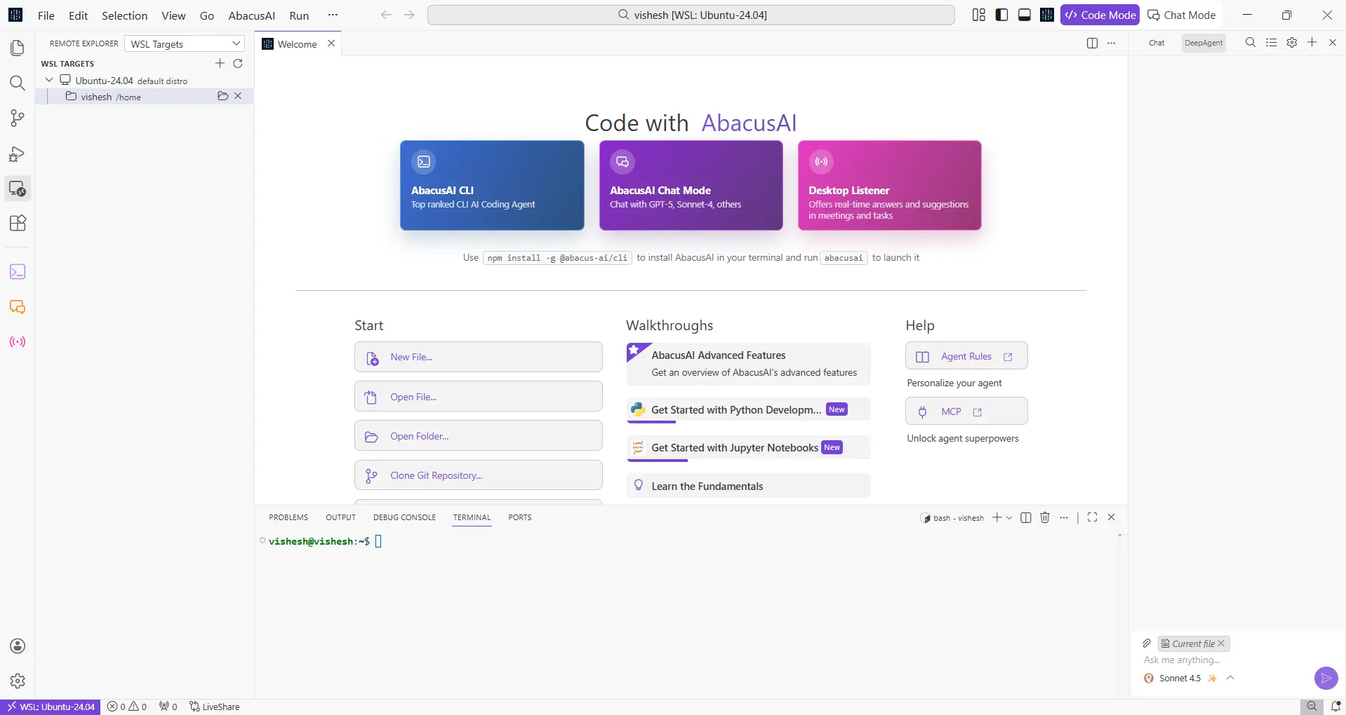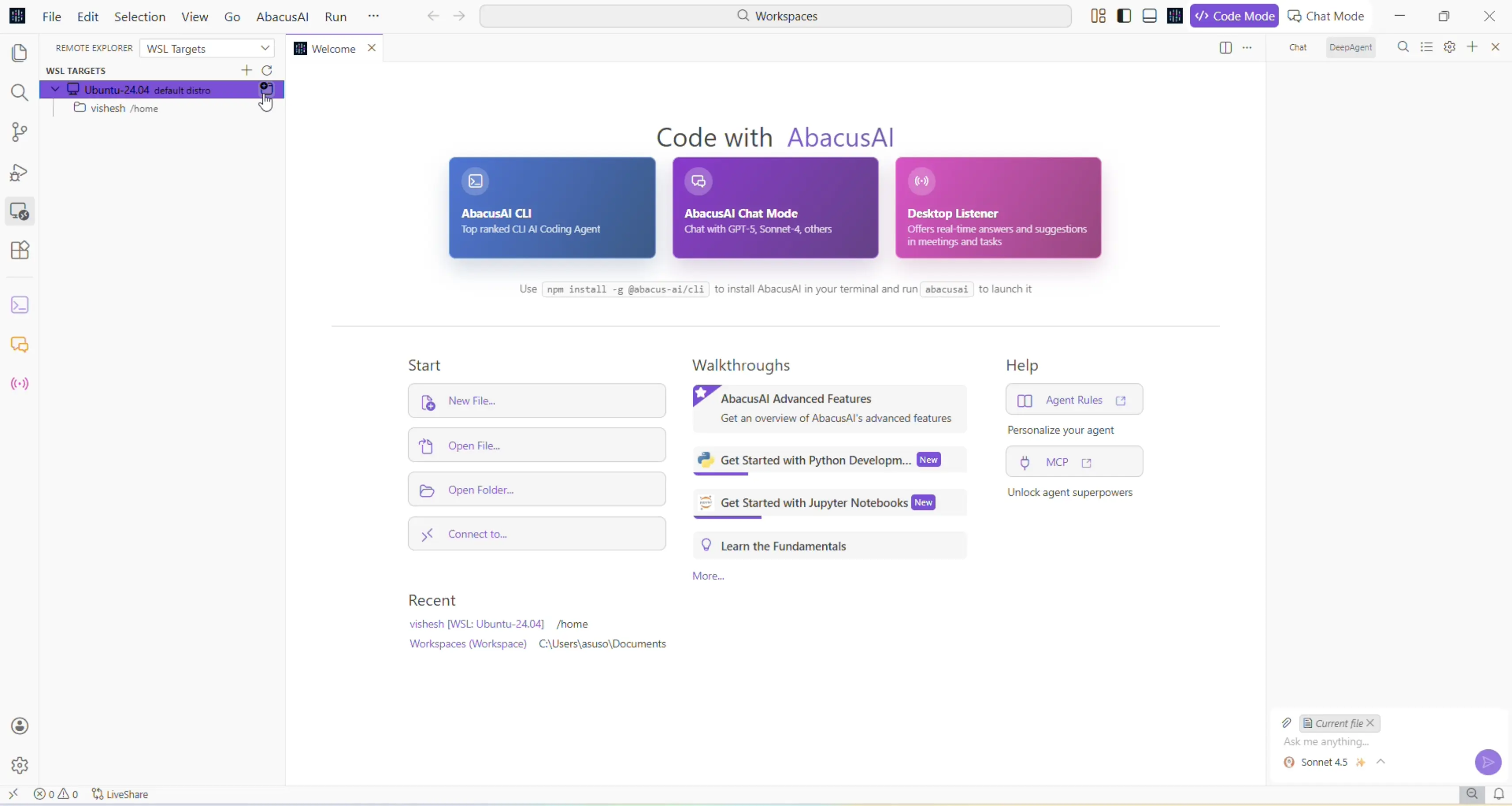 Connect AbacusAI IDE to WSL (Ubuntu)β