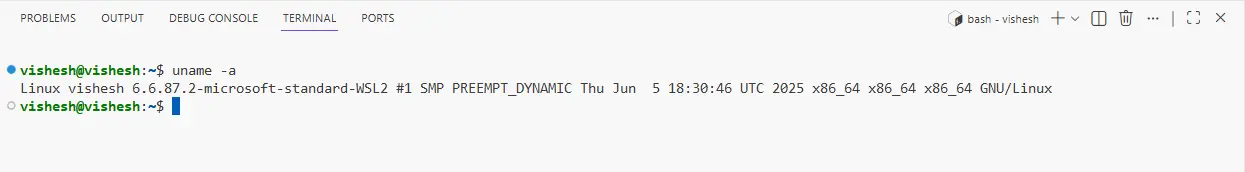 This visually confirms the IDE session is attached to WSL.