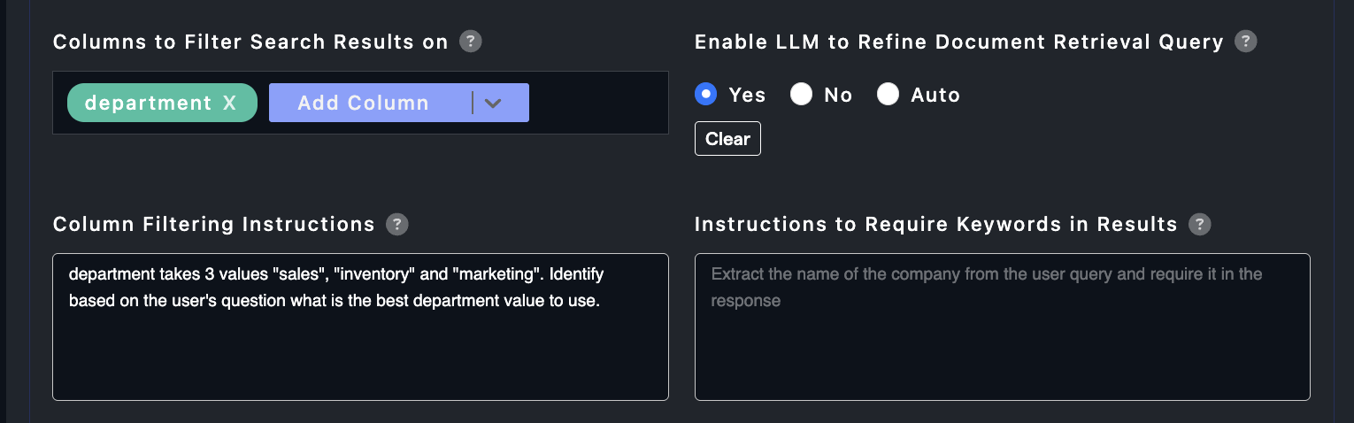 Enable LLM to Refine Document Retrieval Query: YESColumns to Filter Search Results on: department