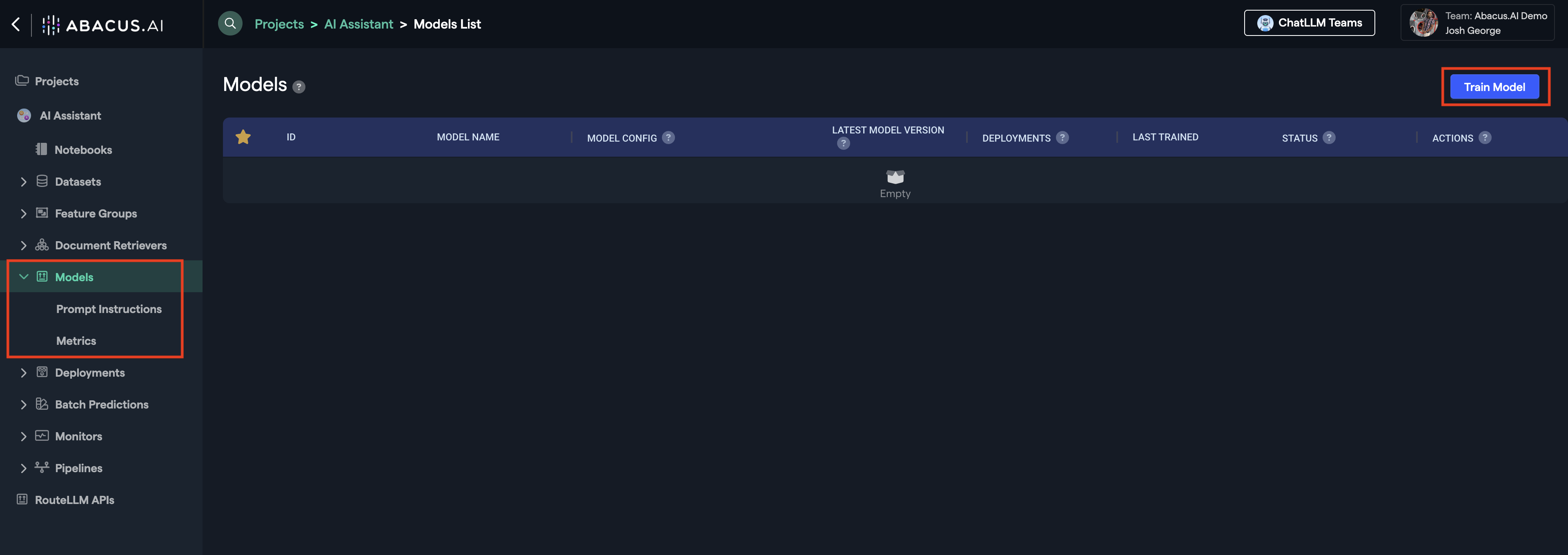 You are now ready to train your model. Create a new model by clicking Models on the left side panel.