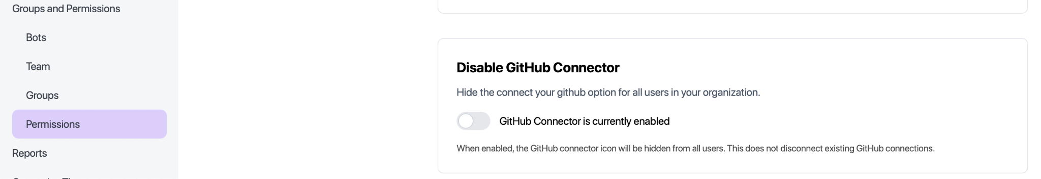 A new setting has been enabled to manage organization access to the GitHub connector. To enable this navigate to the Profile menu by clicking on your profile on the top right-hand corner and selecting profile.