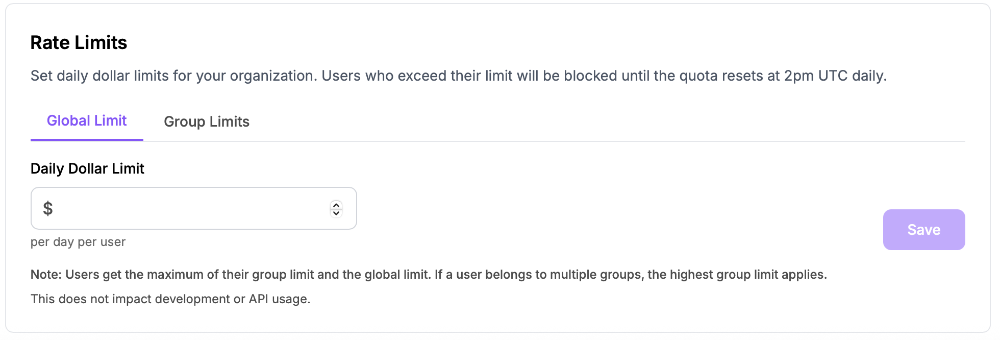 Daily limits can then be set at either a global level or on a group-by-group basis. N.b. the limits apply to Super Assistant use only - i.e. RouteLLM, DeepAgent, Tasks. Autonomous agents or access of chatbots through our API's are not affected.