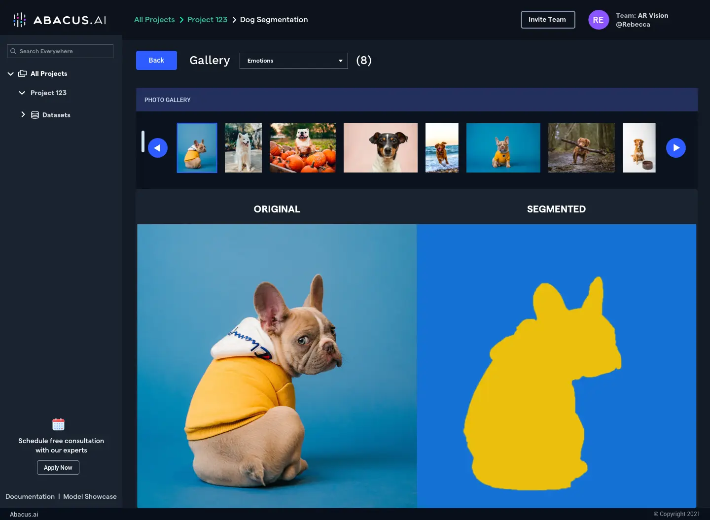 With Abacus.AI you can set up state-of-the-art deep learning models for image segmentation within hours. Based on your specific domain and use case, Abacus.AI can fine-tune pretrained models, apply transfer learning or simply train new vision models from scratch. No cumbersome data preparation or engineering effort to deploy the models in production is required.